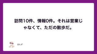 断られることがゴールじゃない。断られた後に一つ情報を持って帰ることがゴールだ。名刺を受け取ってもらえなかった訪問も、情報が一つ取れれば次につながる。